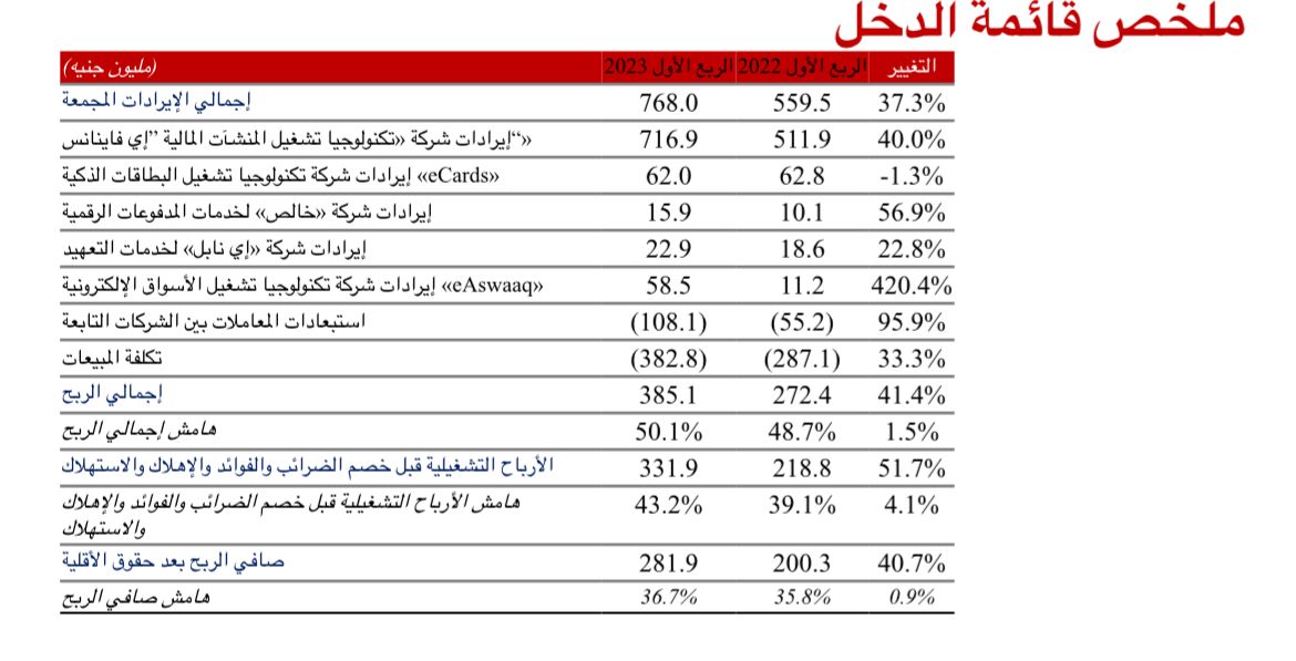 الرئيسية » أرقام تاريخية لـ «إي فاينانس للاستثمارات المالية والرقمية» في الربع الأول من عام 2023