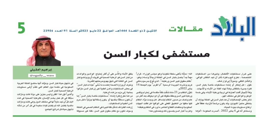 الرئيسية » صحيفة البلاد تطرح الفكرة: مستشفى لكبار السن بالسعودية