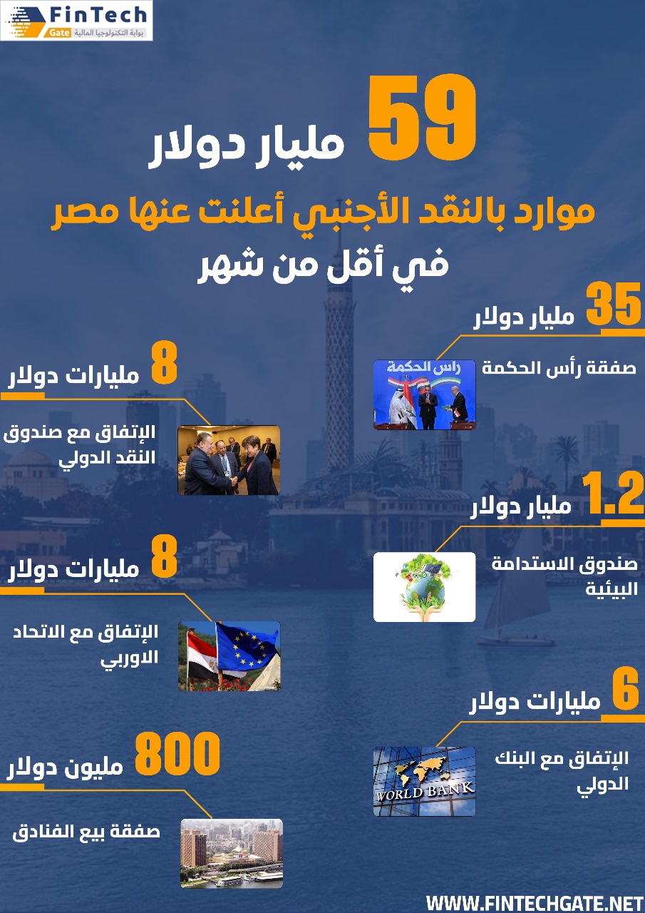 الرئيسية » 59 مليار دولار موارد بالنقد الأجنبي أعلنت عنها مصر في أٌقل من شهر