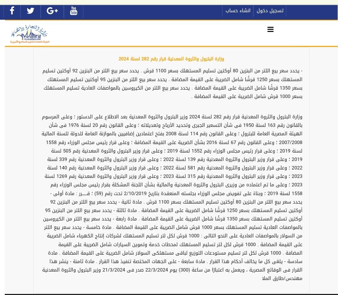 الرئيسية » نص قرار رفع البنزين والسولار وتاريخ سريان القرار (مستند)