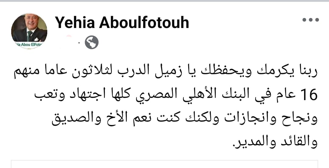 الرئيسية » تعليق «يحيي أبو الفتوح» نائب رئيس البنك الأهلي على إنتقال «هشام عكاشة» لرئاسة بنك مصر