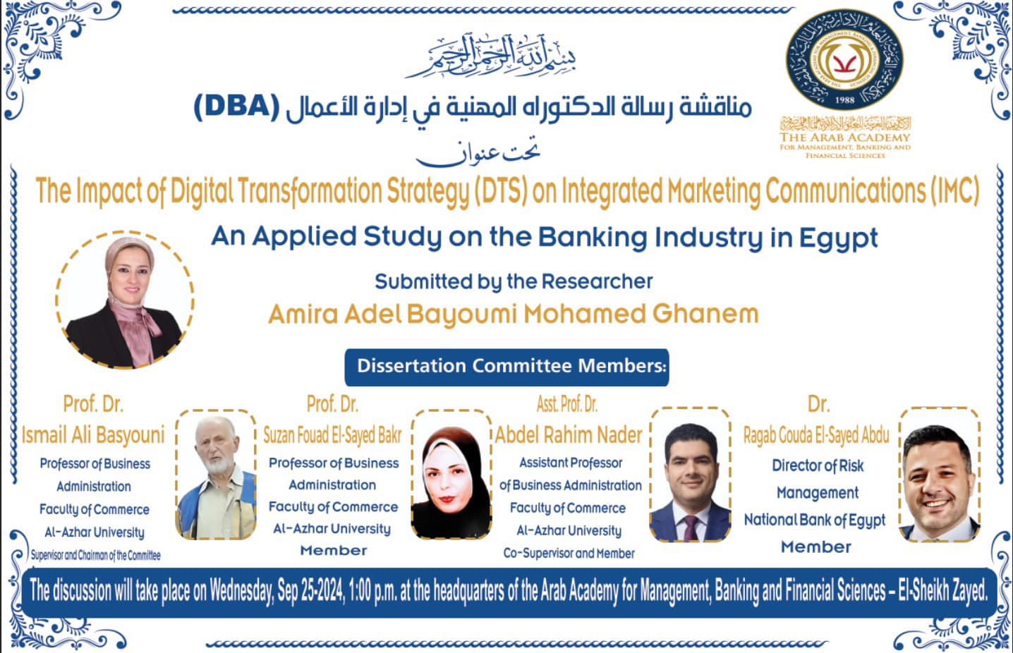 الرئيسية » أميرة عادل مسئول العلاقات الإعلامية بالبنك المركزى المصري تحصل على الدكتوراه في إستراتيجيات التحول الرقمى والتكامل التسويقي والإعلامي في القطاع المصرفي