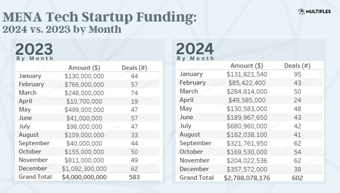 الرئيسية » تقرير «Multiples» : شركات التكنولوجيا المالية الناشئة بالشرق الأوسط وشمال أفريقيا تجمع 2.78 مليار دولار عبر 602 صفقة خلال 2024