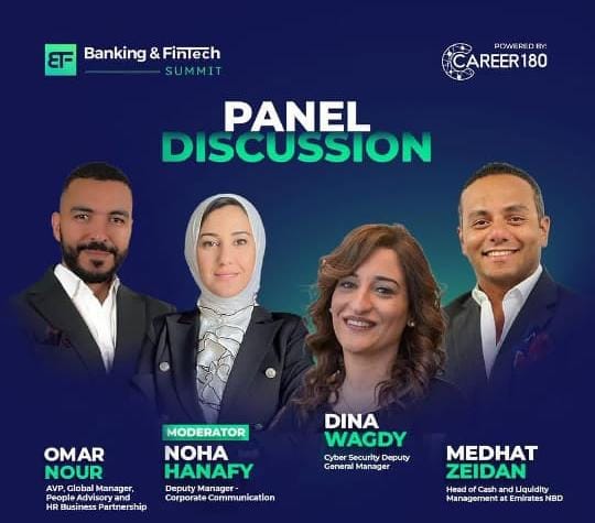 شارك في النقاش نخبة من الخبراء والمتخصصين، وهم عمر نور: مدير أول، الشريك العالمي لشؤون الأفراد، والموارد البشرية في EFG Hermes، دينا وجدي: مدير عام الأمن السيبراني في البنك الأهلى المصري، بالإضافة إلى مدحت زيدان: رئيس إدارة الخزانة والسيولة في Emirates NBD.