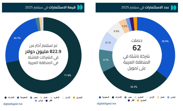 اختتمت الشركات الناشئة في منطقة الشرق الأوسط وشمال أفريقيا شهر سبتمبر على إيقاع تمويلي قوي. جمعت 62 شركة ناشئة تمويلات بلغت 822.9 مليون دولار، قادتها جولة ضخمة لصالح «Property Finder» بقيمة 525 مليون دولار. ويعادل هذا الرقم وحده إجمالي استثمارات شهر سبتمبر المسجلة خلال الفترة ما بين 2020 و2024، مما يعكس تسارع نمو سوق رأس المال الجريء في المنطقة.