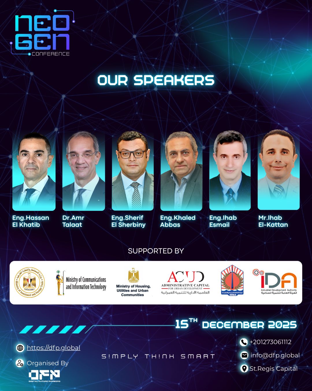 وقد أكد خالد عبد الرحمن المؤسس والرئيس التنفيذي لمؤتمر NEO GEN علي أهمية الحضور الحكومي ومشاركة معالي الوزراء، د.عمرو طلعت والمهندس شريف الشربيني والدكتور حسن الخطيب والمهندس خالد عباس والمهندس إيهاب إسماعيل والأستاذ إيهاب القطان والدكتور فايز عز الدين من مصر، ود.محمد خليف ود.عبد الرحمن خليل وأ.محمد سكراوي وأ.هاني لاشين.