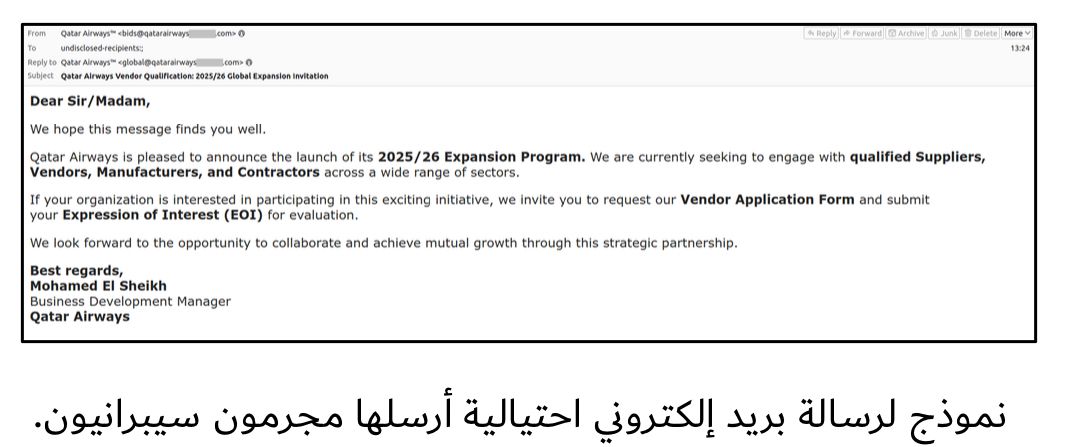 تحقق من المرسل: تحقق دوماً من اسم النطاق ومعلومات الجهة المرسلة. فإذا شككت في صحة المعلومات، فعليك التواصل مباشرة مع الشركة عبر قنواتها الرسمية.