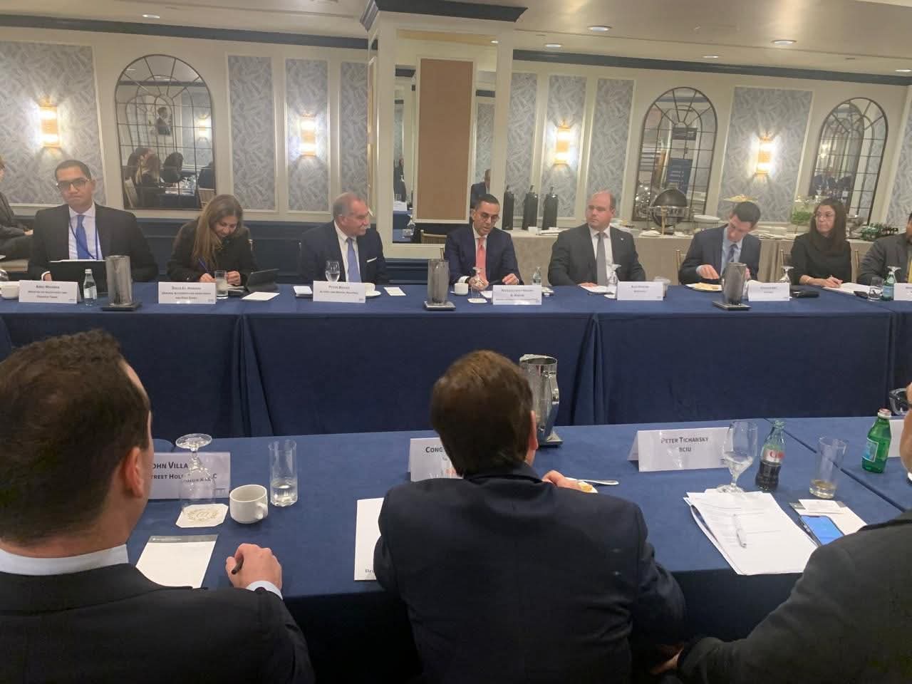 جاء ذلك خلال مشاركته في مائدة مستديرة نظمها مجلس الأعمال للتفاهم الدولي (BCIU) بالعاصمة الأمريكية واشنطن، في إطار زيارته الرسمية للولايات المتحدة،بحضور بيتر تيشانيسكي، الرئيس التنفيذي للمجلس، وبمشاركة عدد من كبار التنفيذيين وممثلي كبرى الشركات الأمريكية في مجالات التمويل والطاقة والصناعة والتكنولوجيا.