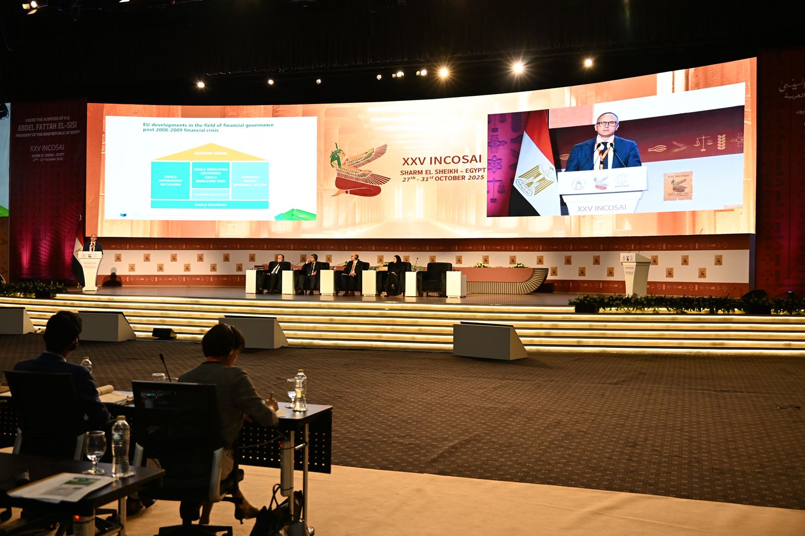 As part of the 25th Congress of th Internation Organization of Supreme Audit Institutions (INTOSAI), held in Sharm El-Sheikh under the patronage of His Excellency President Abdel Fattah El-Sisi, a special session was held on the first technical theme titled “The Role of Supreme Audit Institutions in Auditing Central Banks and Government Activities during Financial and Economic Crises.” The session brought together presidents of supreme audit institutions, international experts, and representatives of regional organizations.