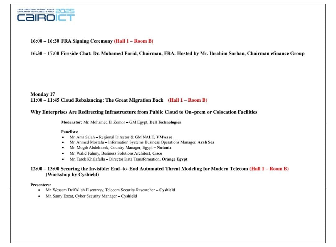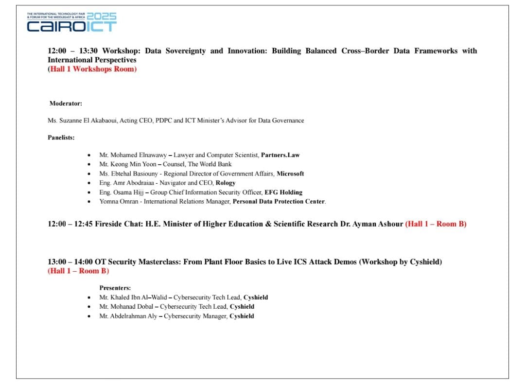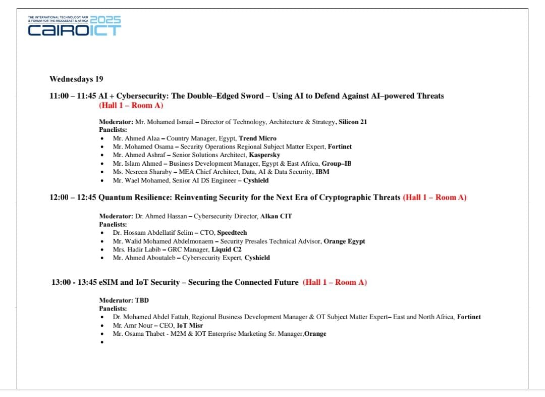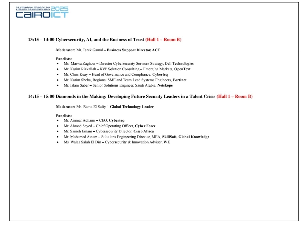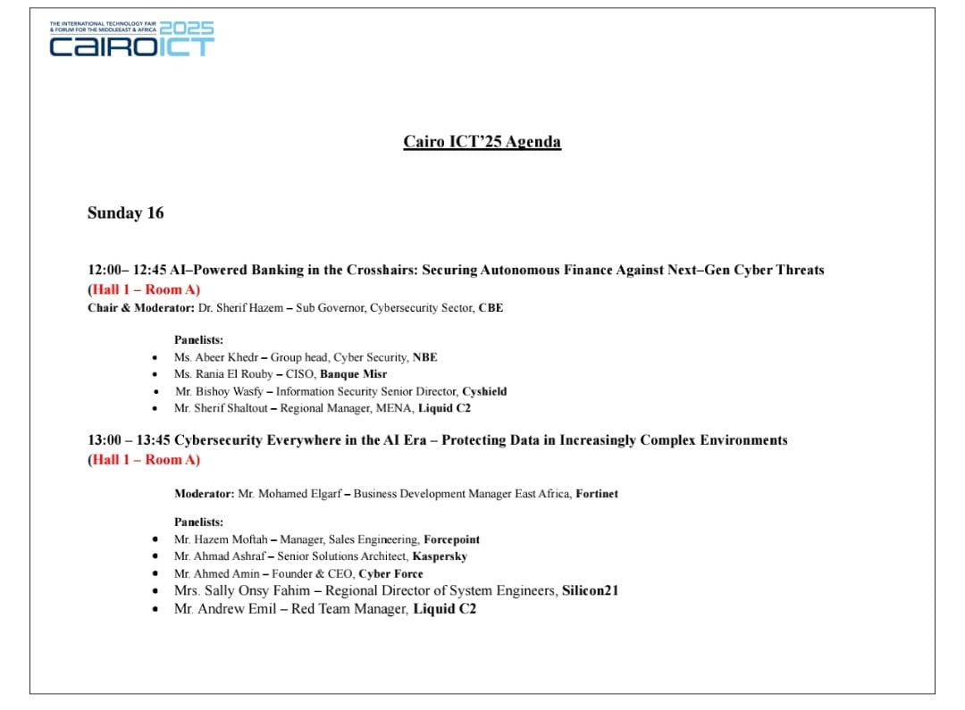 الأمن السيبراني والذكاء الاصطناعي يستحوذان على أجند مؤتمر «Cairo ICT 2025»..تعرف على الأجندة الكاملة