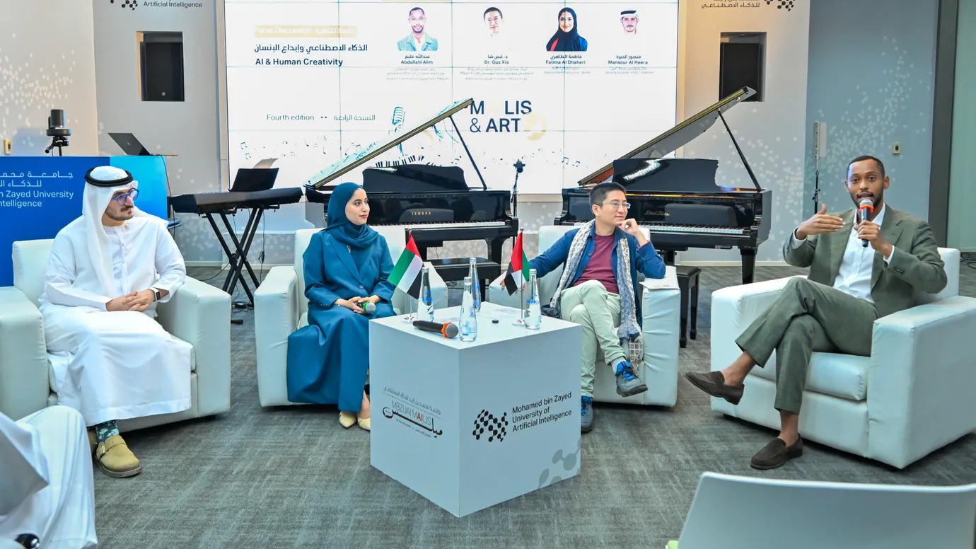 استضافت جامعة محمد بن زايد للذكاء الاصطناعي، بالتعاون مع مؤسسة أبوظبي للموسيقى والفنون، النسخة الرابعة من مبادرتها المجتمعية الرائدة «مَيْلس»، تحت شعار: «فنّ الذكاء والإبداع البشري». وانعقدت الجلسة في حرم الجامعة بمدينة مصدر، حيث تناولت العلاقة المتطورة بين الذكاء الاصطناعي والفنون، مسلّطة الضوء على الدور التحويلي الذي يؤديه الذكاء الاصطناعي في الموسيقى والفنون البصرية والتعبير الإبداعي. وجاءت الجلسة ضمن مبادرة «رواق الفكر» التابعة لمؤسسة أبوظبي للموسيقى والفنون، وهي سلسلة مخصّصة من المحادثات والمحاضرات التي تستضيف فنانين ومفكرين بارزين.