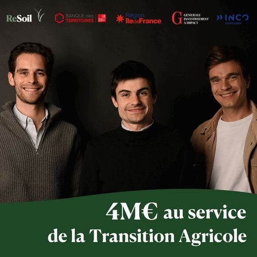 جمعت شركة «ReSoil» الفرنسية، المتخصصة في دعم المزارعين خلال التحول البيئي لمزارعهم، 4 ملايين يورو لتوسيع مشاريعها في الزراعة التجديدية وتطوير منصتها الرقمية لإدارة الكربون. وتشارك في الجولة كل من Banque des Territoires، وInvESS Île-de-France Amorçage المدعوم من منطقة إيل دو فرانس، وGenerali Impact Investment، وهما صندوقان تديرهما INCO Ventures.