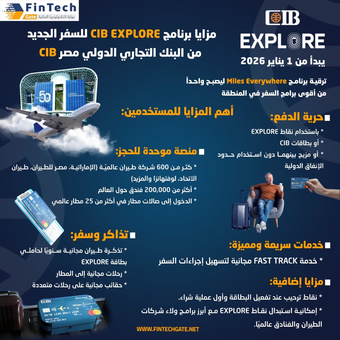 * تذكرة طيران مجانية سنويًا لحاملي بطاقة EXPLORE
