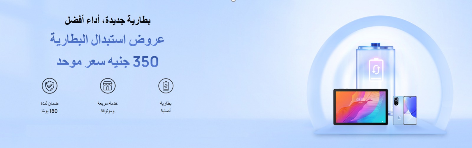 أعلنت شركة هواوي لأعمال المستهلك إطلاق حملة “استبدل بطاريتك” الجديدة لجميع مستخدميها، حيث تقدم الحملة الفرصة لمستخدمي هواوي لاستبدال بطاريات الهواتف و الأجهزة اللوحية بأسعار تبدأ من 350 جنيه فقط.