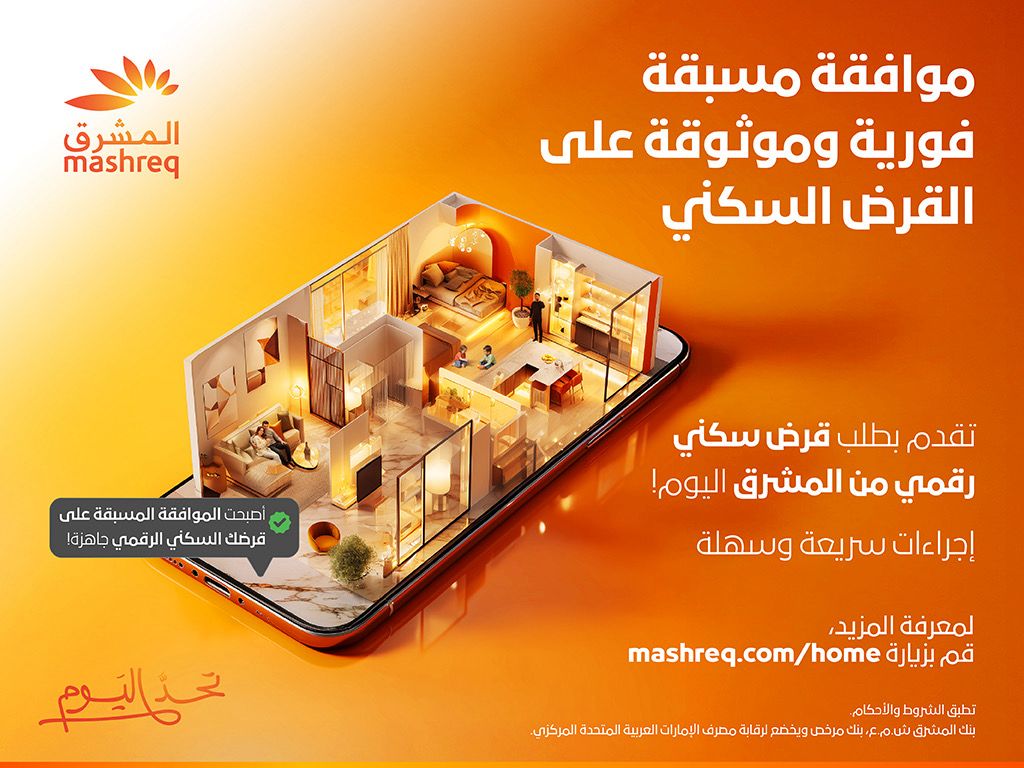 أعلن المشرق، المؤسسة المالية الرائدة في منطقة الشرق الأوسط وشمال إفريقيا، عن إطلاق خدمة الموافقة المبدئية الرقمية على القروض السكنية بشكل رسمي، في خطوة مبتكرة من شأنها إعادة رسم ملامح تجربة التمويل العقاري في دولة الإمارات. وتتيح هذه الخدمة الجديدة حالياً للمقيمين من غير المواطنين في الدولة، ممن يستوفون شروط الأهلية، الحصول على تقييم سريع وموثوق لأهليتهم للحصول على قرض سكني، بالاعتماد على بيانات تم التحقق منها مسبقاً.