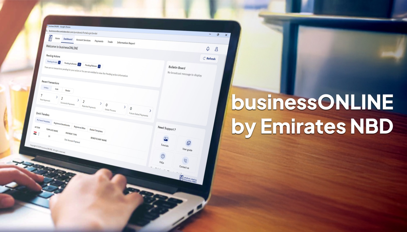 بالإضافة إلى ذلك، تدعم منصة businessONLINE اتخاذ القرارات الاستراتيجية عبر تقديم تقارير معلوماتية وإدارية (MIS) متقدمة ومؤشرات أداء دقيقة تساعد المؤسسات على وضع خطط مالية أكثر فاعلية. كما تقدم مزايا إضافية تشمل تنفيذ التحويلات الداخلية والخارجية بسهولة. وسداد المدفوعات المجمعة والفواتير، وإدارة الاعتمادات المستندية وخطابات الضمان إلكترونيًا. فضلاً عن إمكانية طلب دفاتر الشيكات وتنفيذ المعاملات بكفاءة عالية. وتوفر المنصة أيضًا خاصية سجلات المراجعة التي تحتفظ بكافة تفاصيل المعاملات المالية. مع إمكانية تتبعها والرجوع إليها حسب التاريخ أو نوع المعاملة أو الحساب. كذلك تتيح تحميل كشوف الحسابات بعدة صيغ مثل Excel وPDF. وهو ما يوفر للشركات تجربة رقمية متكاملة تُسهل إدارة الأعمال وتُعزز الرقابة والشفافية.