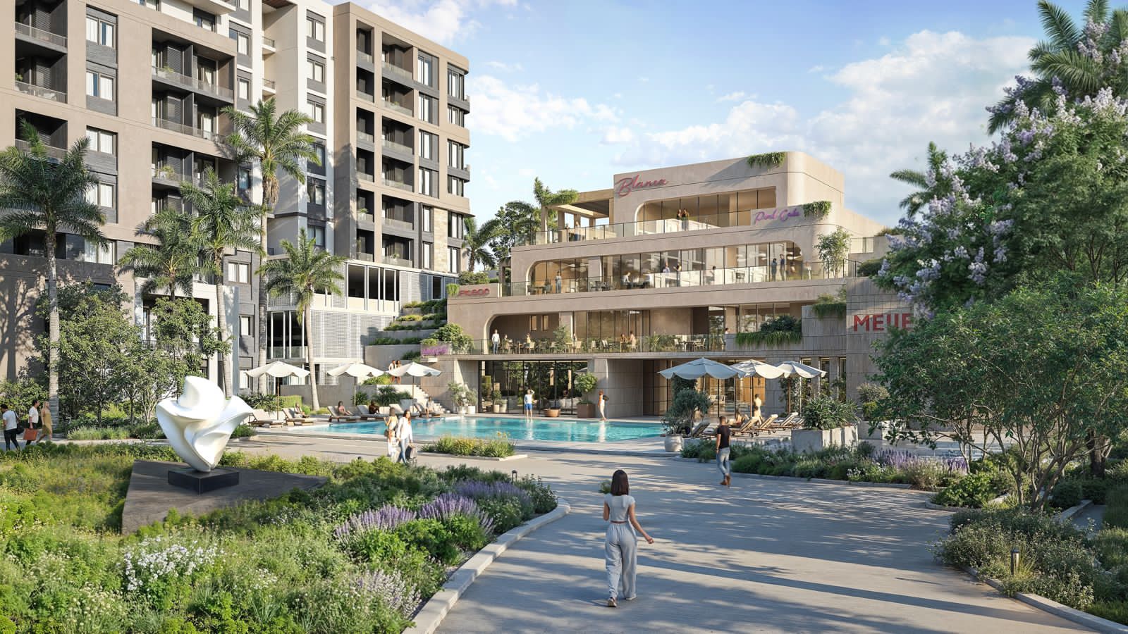 ويمثل محور الـ”Green Spine ” الطبيعي قلب المشروع، إذ يمتد عبر المساحات الخضراء والمسطحات المائية، مع مسارات للمشي والجري وركوب الدراجات. ومناطق جلوس مظللة، ومناطق آمنة للأطفال، بالإضافة إلى مناطق للأنشطة الجماعية لتعزيز التواصل الاجتماعي بين السكان. ويهدف تصميم اللاندسكيب إلى تعزيز الهدوء النفسي والراحة البصرية، ليجمع المشروع بين النشاط والحياة الهادئة في آن واحد.