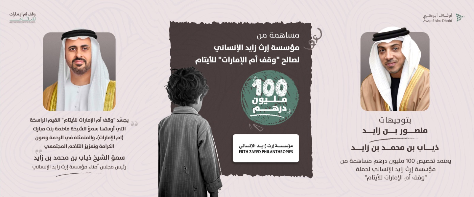 الرئيسية » «ذياب بن محمد بن زايد» يعتمد مساهمة بـ 100 مليون درهم من «إرث زايد الإنساني» لصالح «وقف أم الإمارات للأيتام»