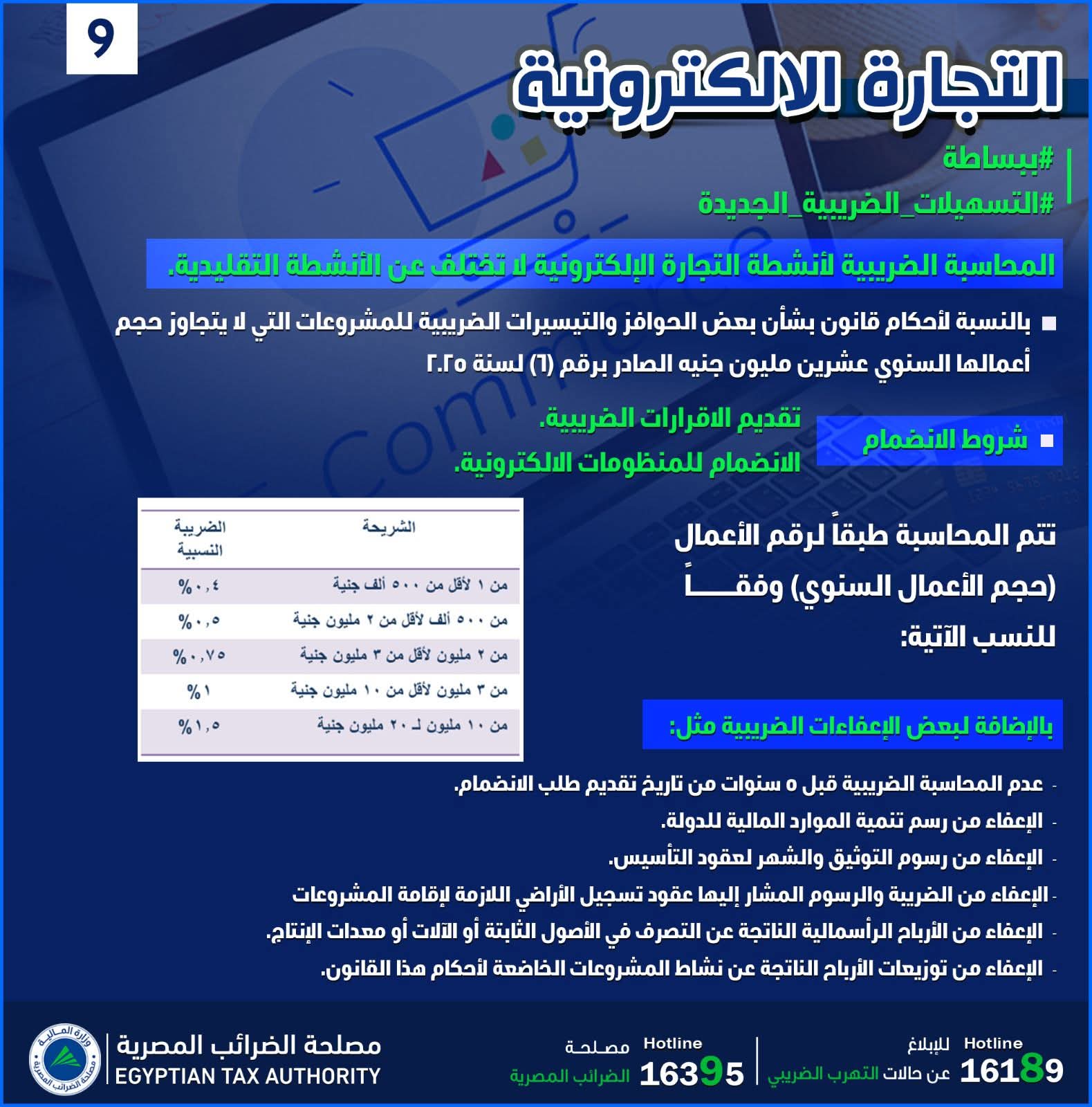 الرئيسية » «الضرائب المصرية»: حوافز وتسهيلات ضريبية للمشروعات والتجارة الإلكترونية وفق قانون 6 لسنة 2025