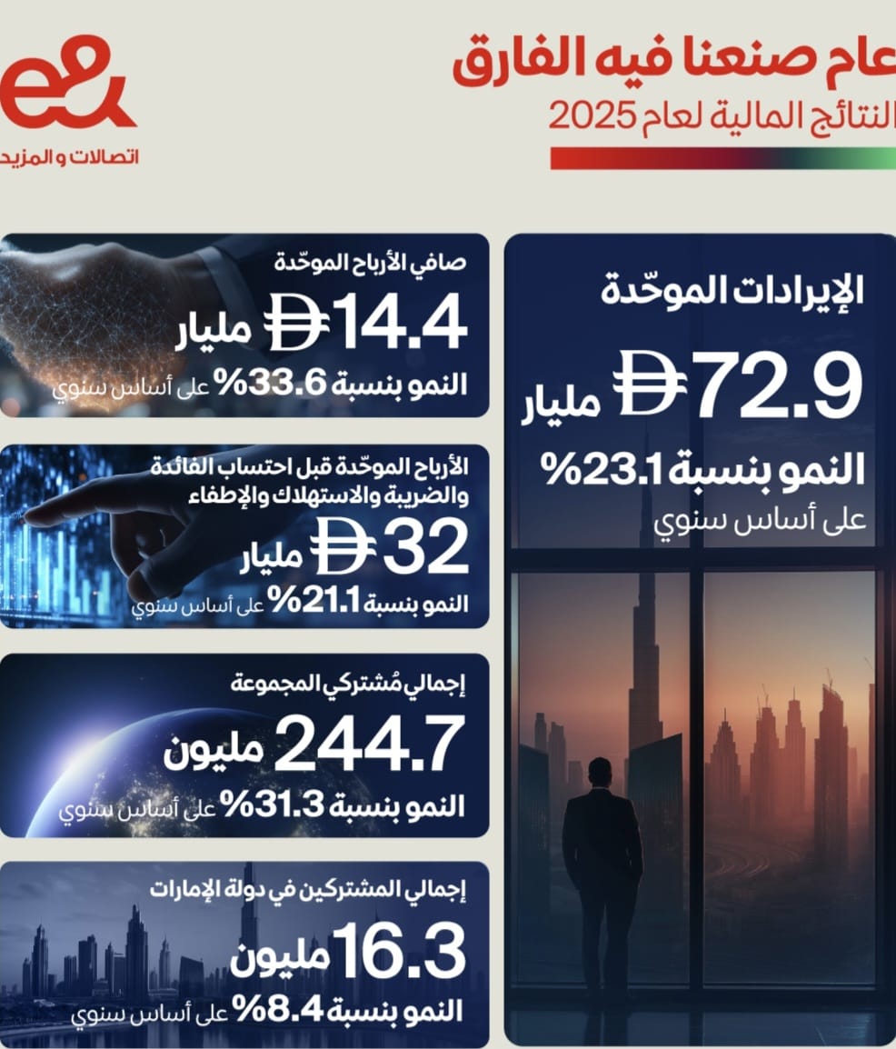 الرئيسية » «إي آند» تقفز بإيراداتها إلى 72.9 مليار درهم في 2025 بنمو 23.1%.. وصافي الربح يرتفع 33.6% إلى 14.4 مليار