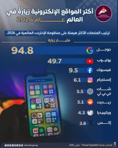 الرئيسية » منصة «Visual Capitalist»: «جوجل» و «يوتيوب» يتصدران الإنترنت عالميًا بأكثر من 140 مليار زيارة في 2026