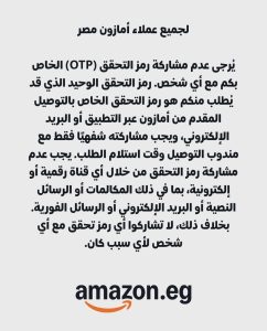 الرئيسية » «أمازون مصر» تحذر العملاء من مشاركة رمز التحقق (OTP) مع أي طرف
