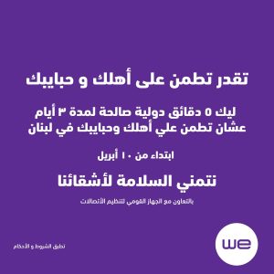 الرئيسية » اعتبارا من اليوم ..«المصرية للاتصالات» تتيح 5 دقائق مكالمات دولية مجانية إلى لبنان لمدة 3 أيام