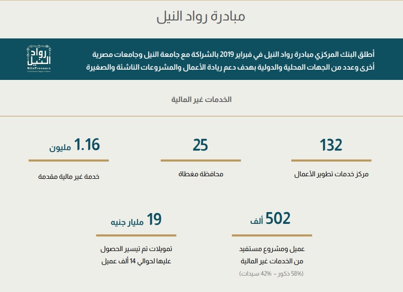 الرئيسية » «المركزي المصري»: مبادرة «رواد النيل» تدعم أكثر من 500 ألف مستفيد وتقدم 1.16 مليون خدمة غير مالية وتحتضن 500 شركة ناشئة
