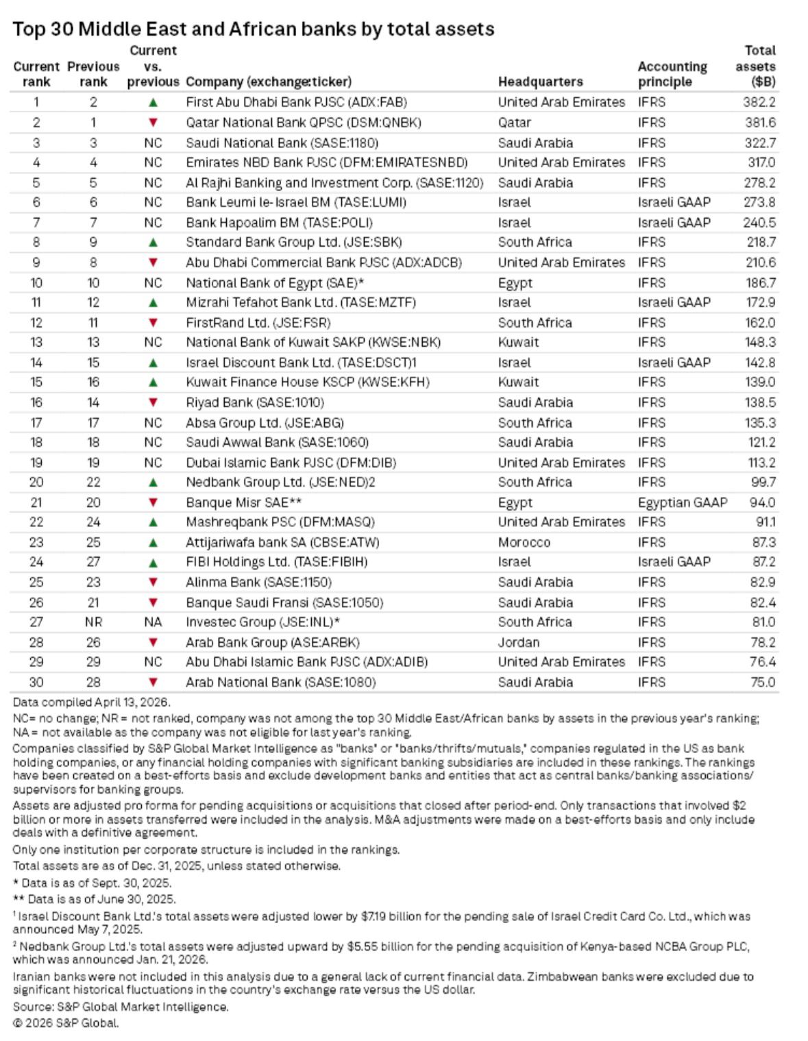 الرئيسية » S&P Intelligence: Largest 30 Banks in the Middle East and Africa 2026